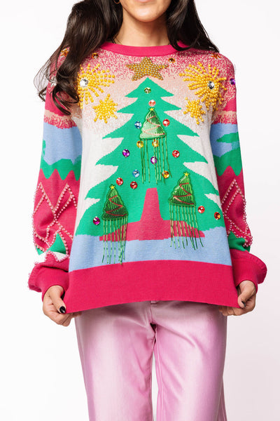 Queen of Sparkles - Multi Pearl Fringe Christmas Tree Sweater