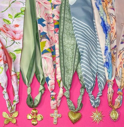Fall Scarf Charm Necklaces - Butterflies, Neutrals, Oranges, Greens