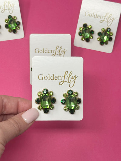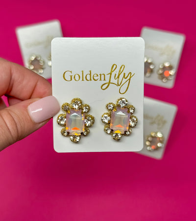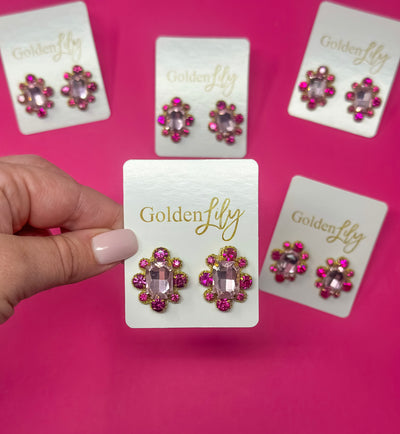 Statement Stud Earrings - Pink, Rhinestone and Opal Stones