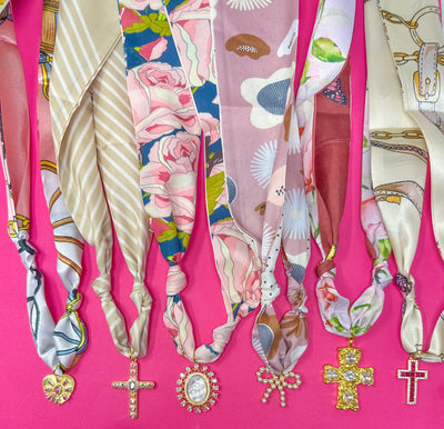 Fall Scarf Charm Necklace - Floral, Pinks, Neutrals