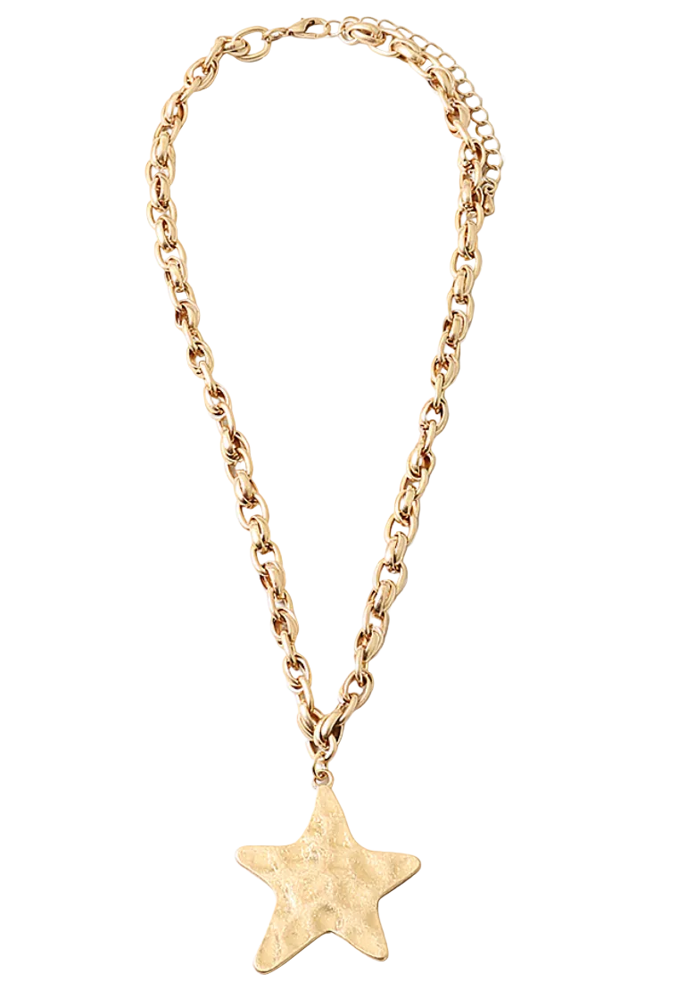 The hammered finish on the star adds dimension and shine, catching the light beautifully with every movement. Whether you're dressing up a simple outfit or adding a statement to your layered look, this piece is effortlessly versatile and eye-catching.