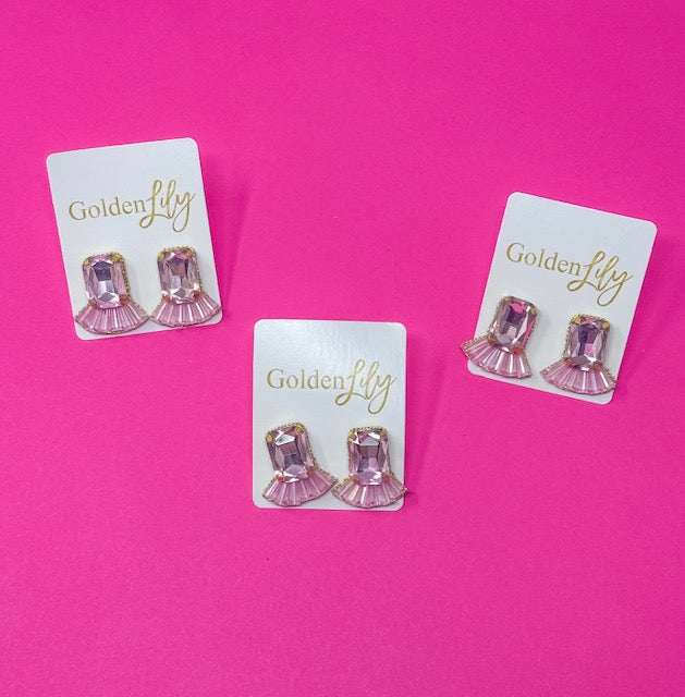 Turn heads this Spring season with our Spring Statement Gem Stud Earrings - Pink. These dazzling studs feature a bold, pink emerald-cut stone that shifts beautifully in the light!