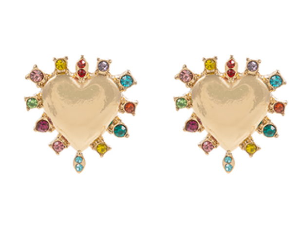 Valentine's Heart Burst Stud - Gold and Multi Rhinestone